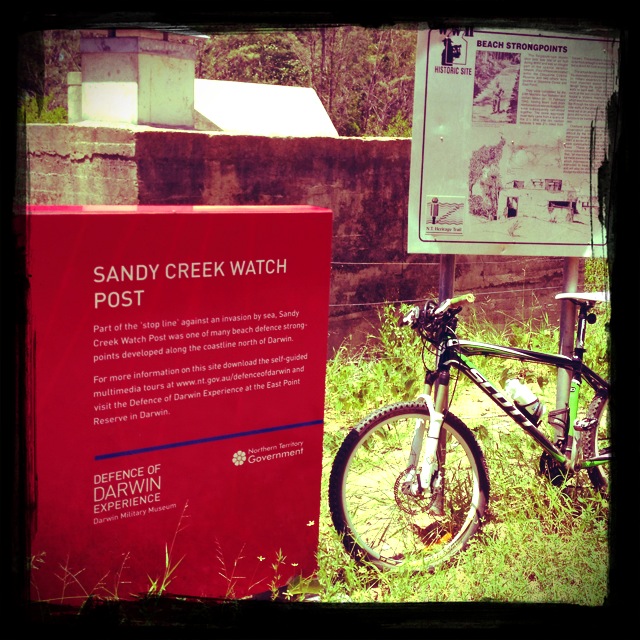 Janathon has begun more as a series of hiccups rather than a lovely flow of relaxed exercise. On Thursday I fell victim to the evil influence of procrastination sourced by reading blogs, following twitter referrals and pondering email messages. The result was that I found myself unexercised and well into the day with temperatures steadily rising past 33 degrees (centigrade). The thought of such early failure in Janathon forced me out of the door. My plan was to ride my mountain bike along the shady trail leading into Lee Point, lock up my bike, and run to the beginning of the trail and back, then ride home.